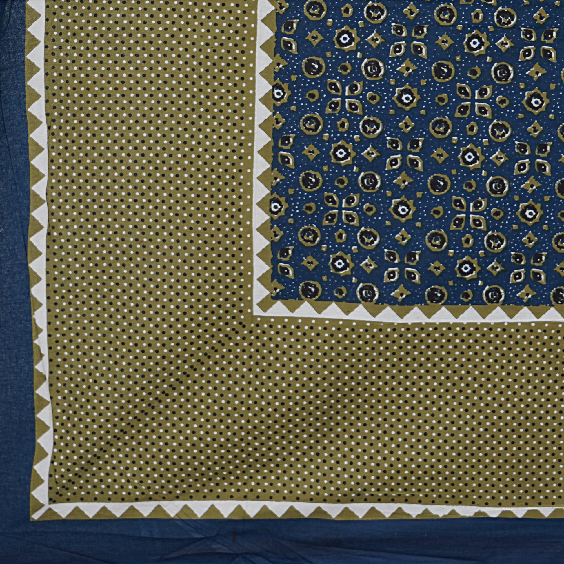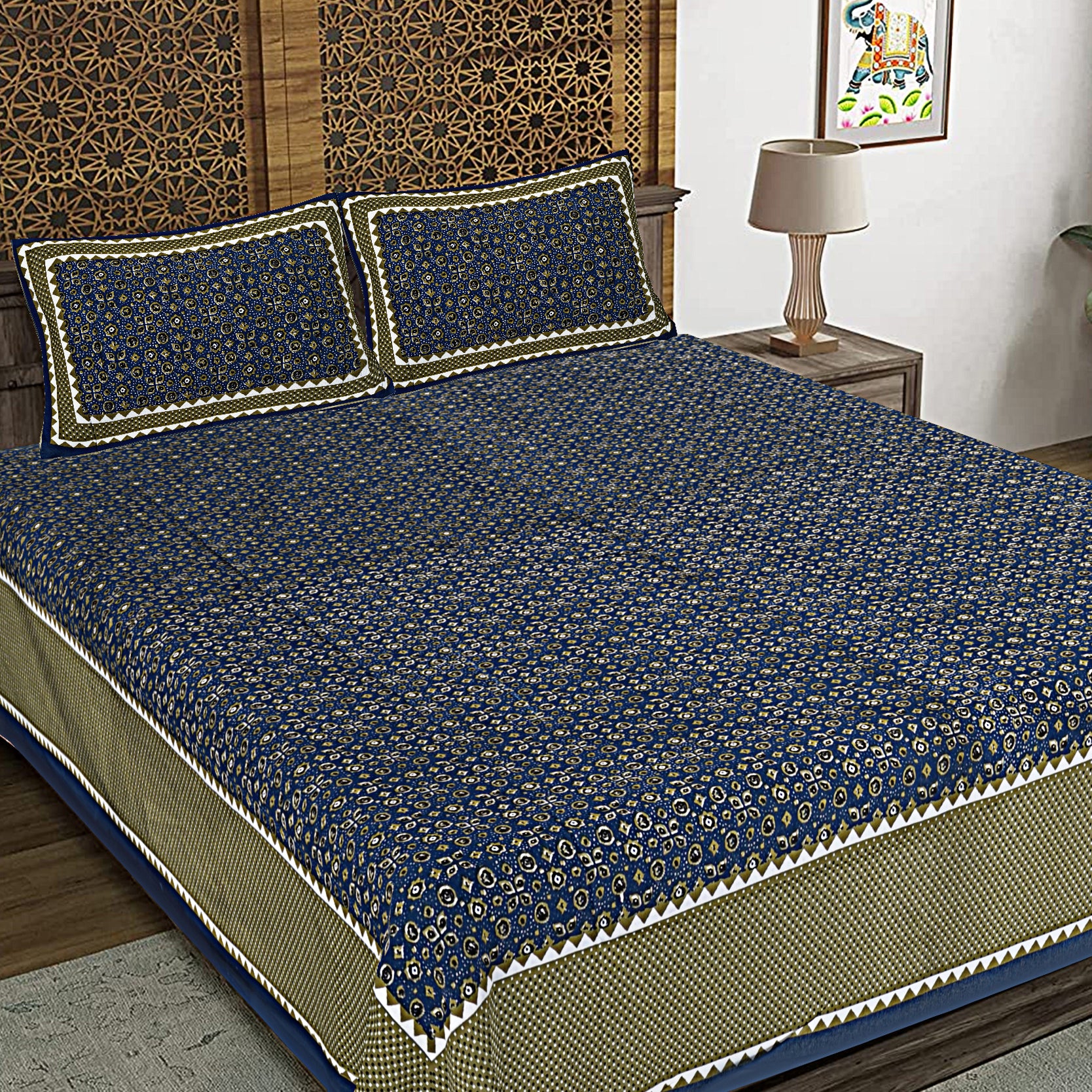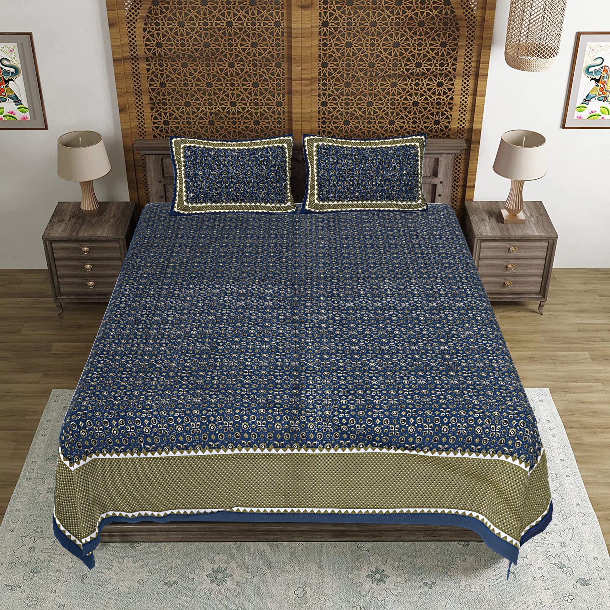 Ajrakh Redefined Blue King Size 100% Cotton Bedsheets