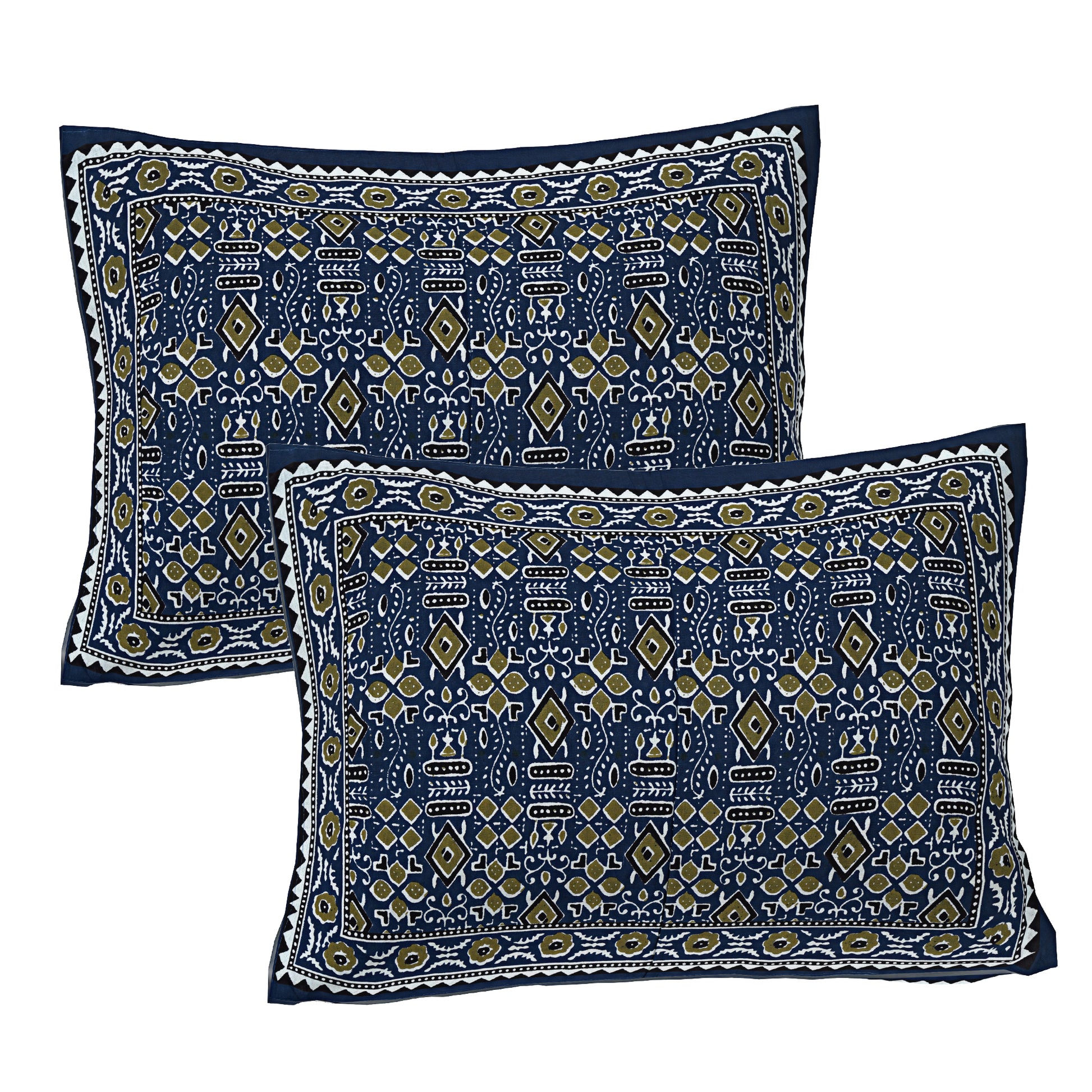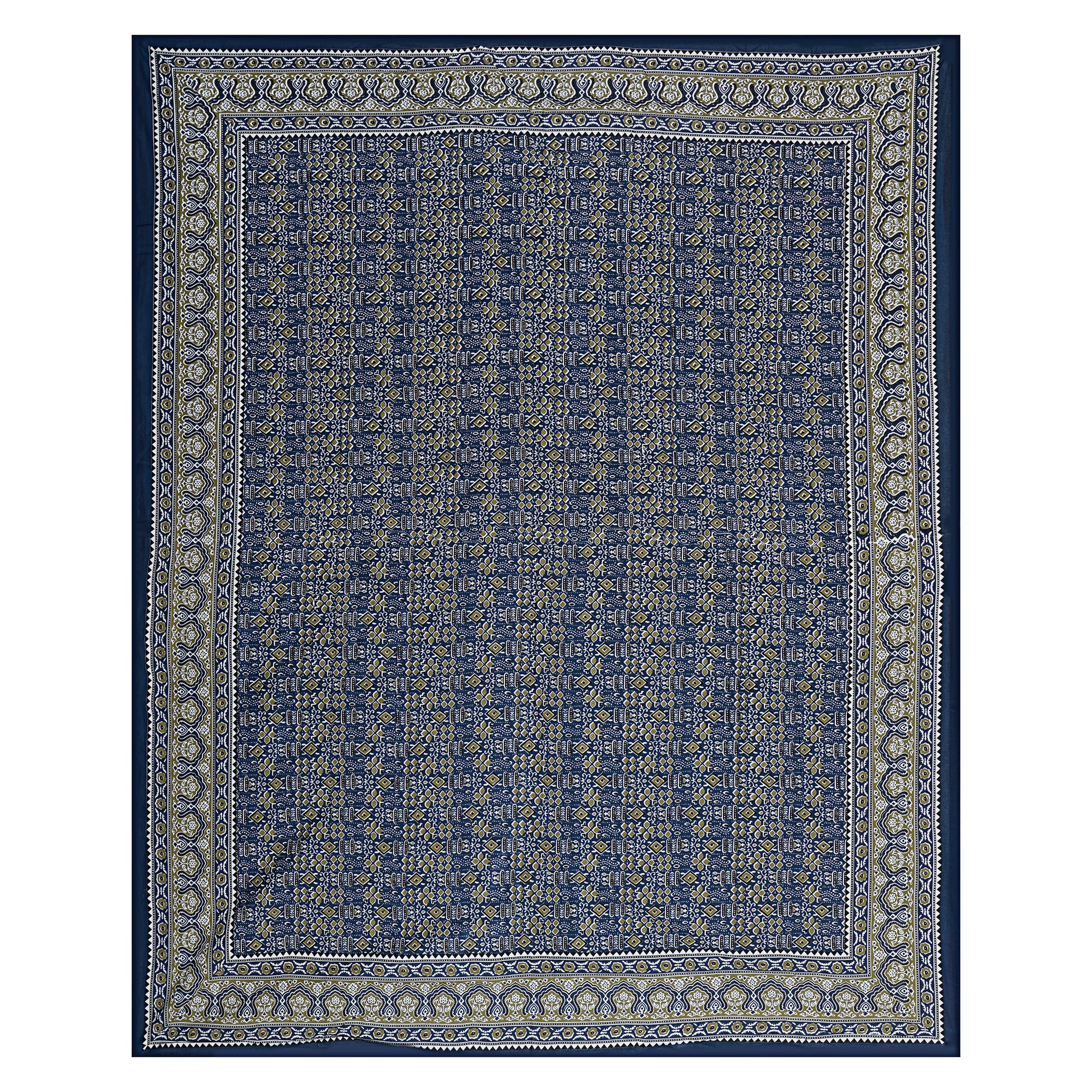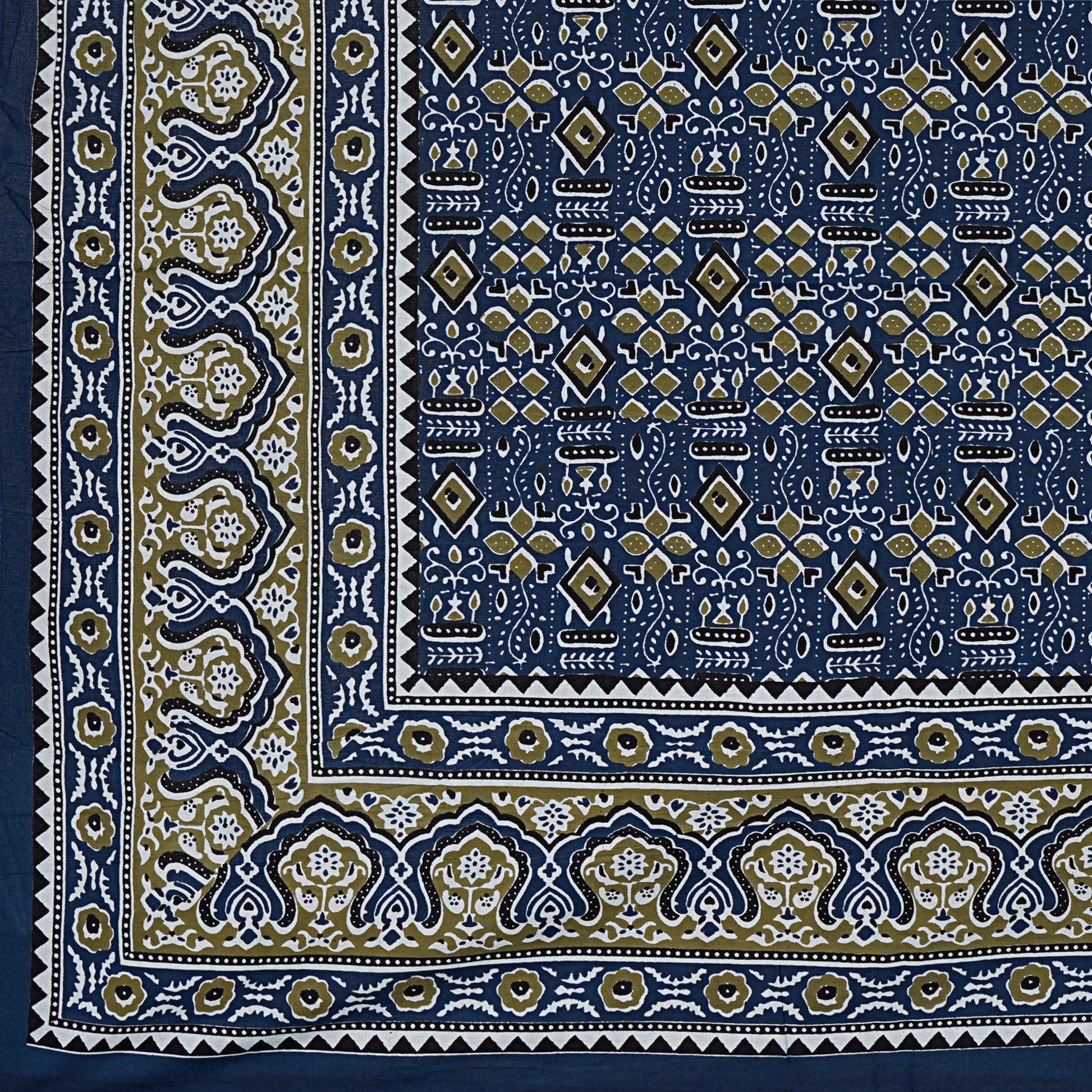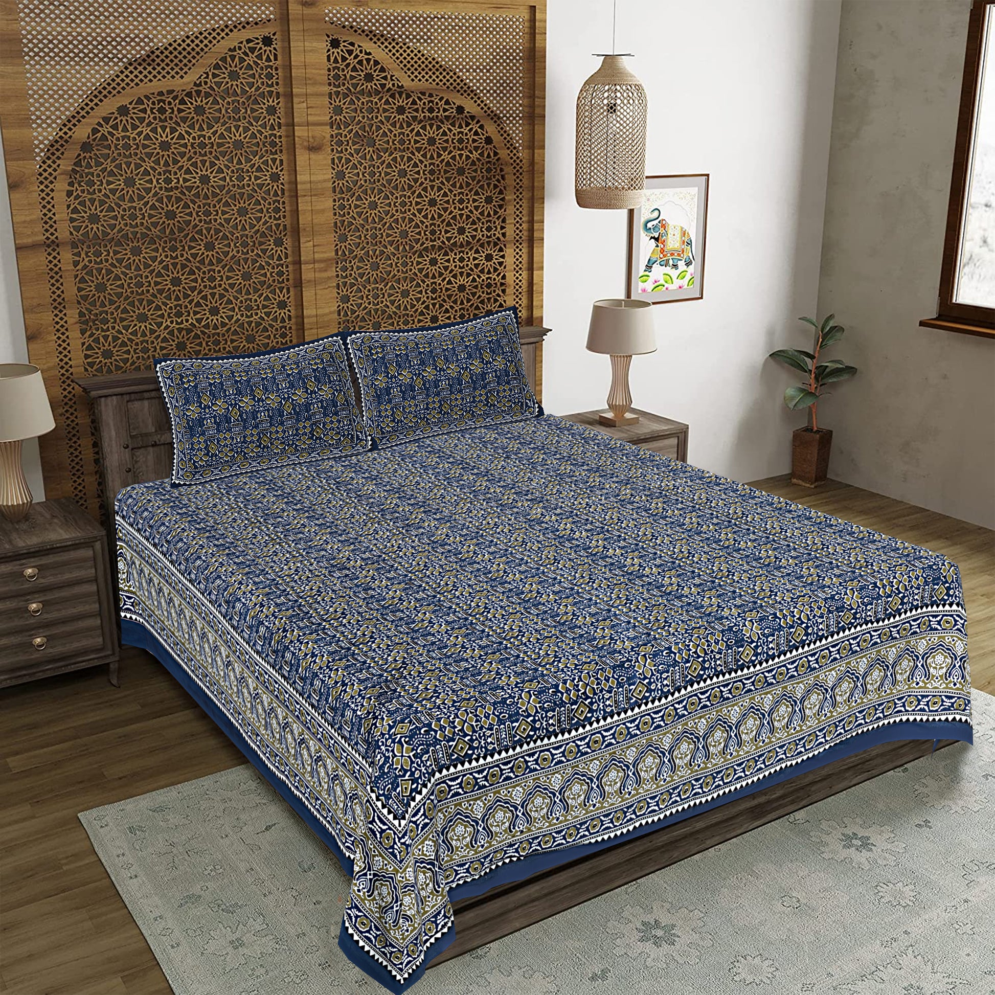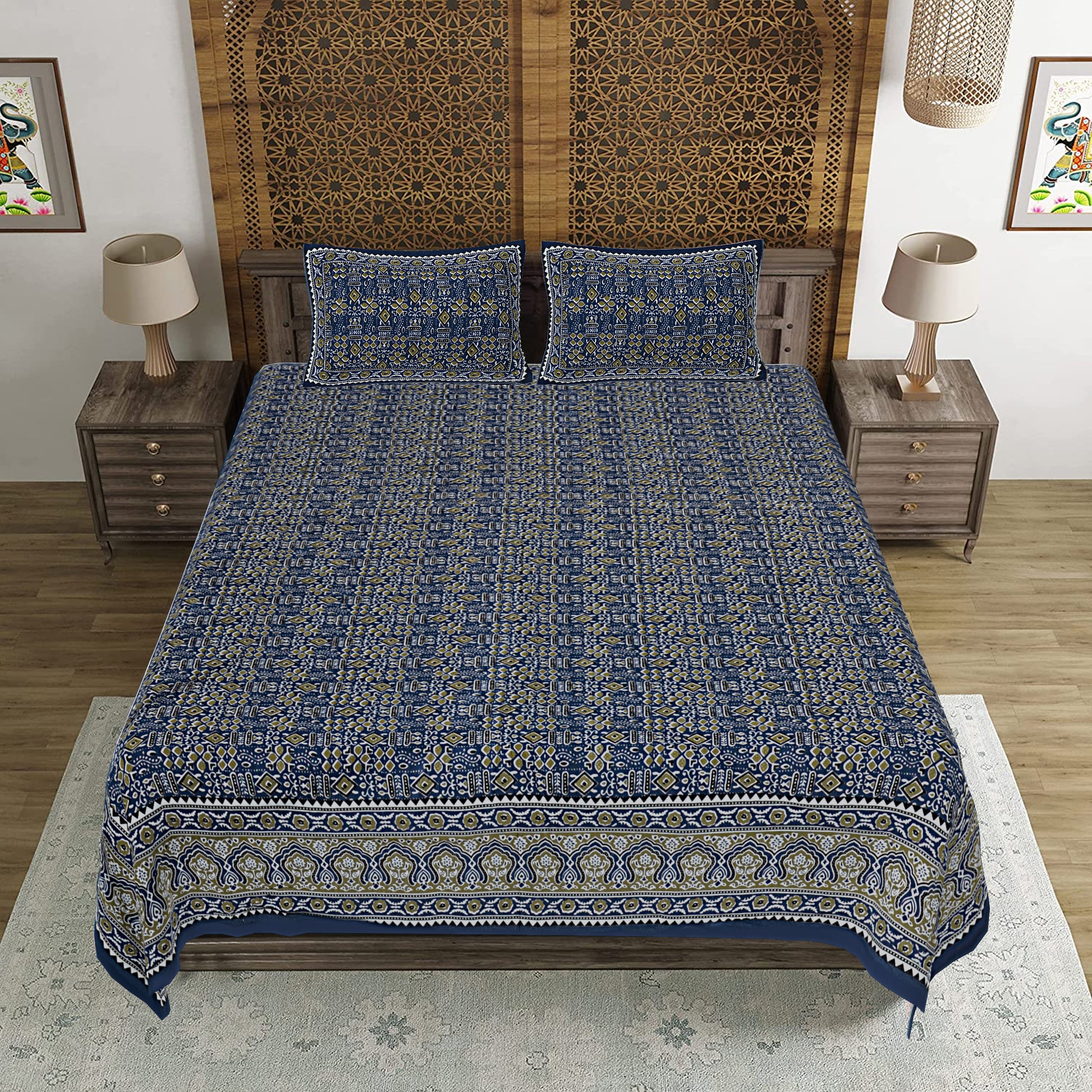 Beyond Ajrakh Blue King Size 100% Cotton Bedsheets