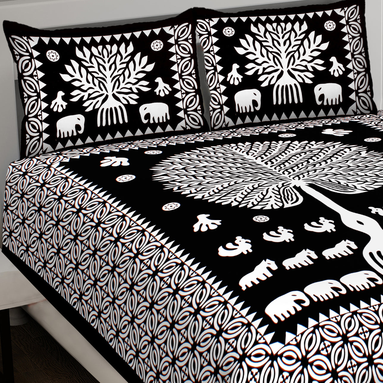 Style your bedroom with this vibrant cotton jaipuri print bedsheet set exclusively designed to make artsy statement. The jaipuri-printed bed sheets feature traditional-themed floral patterns in lively hues. Also, the 100% cotton fabric ensures skin-friendliness, easy wash ability and color-fastness. A fine fusion of both comfort and design- this vibrant and ethnic range of bed sheets is all you need for a restful sleep in all the seasons.