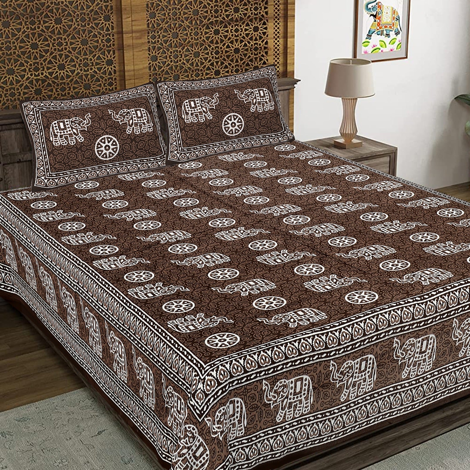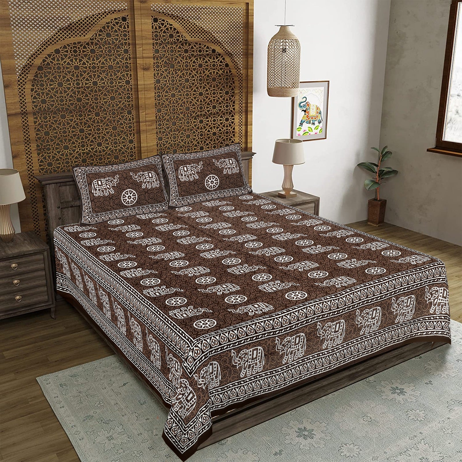 Elephant on Wheels Brown King Size 100% Cotton Bedsheets