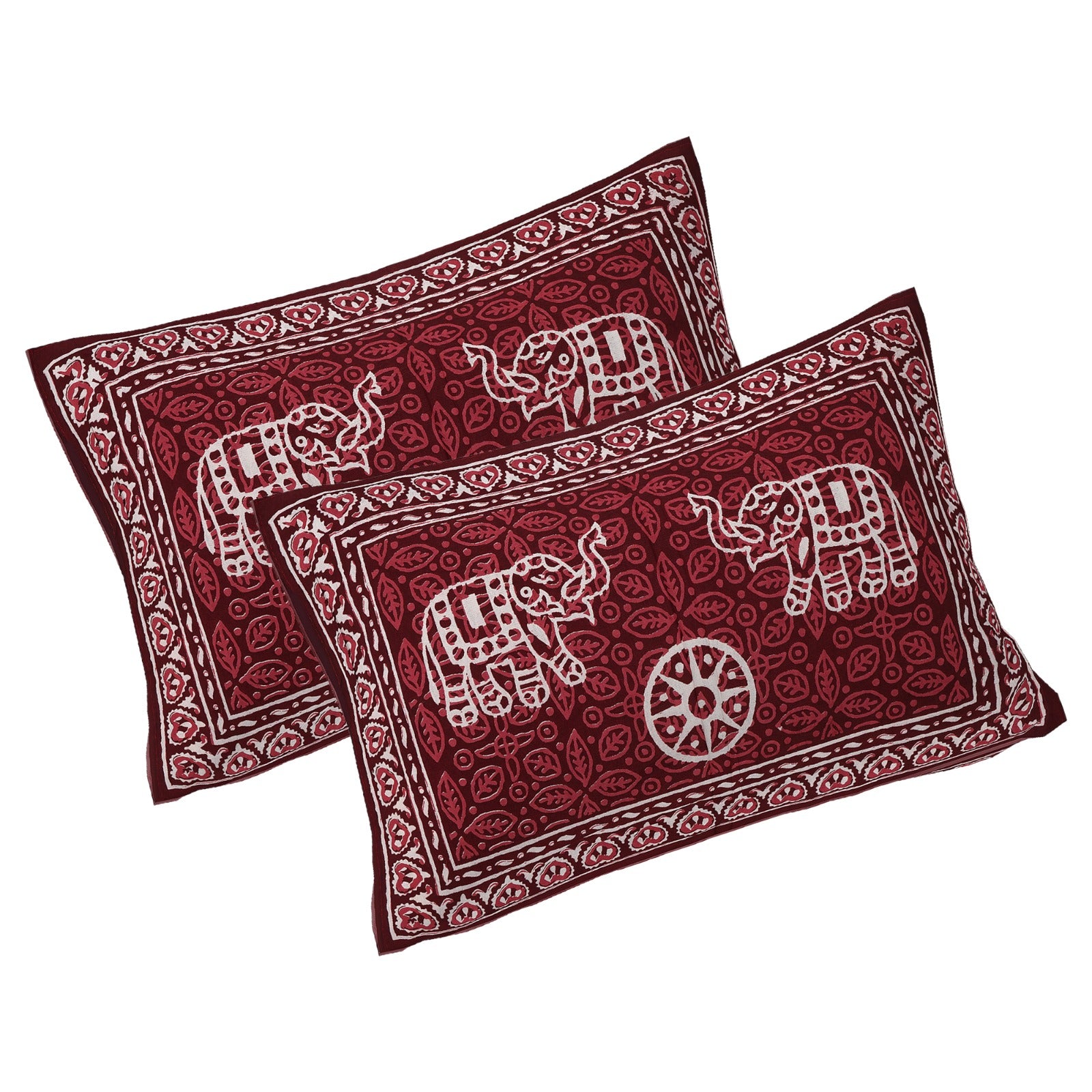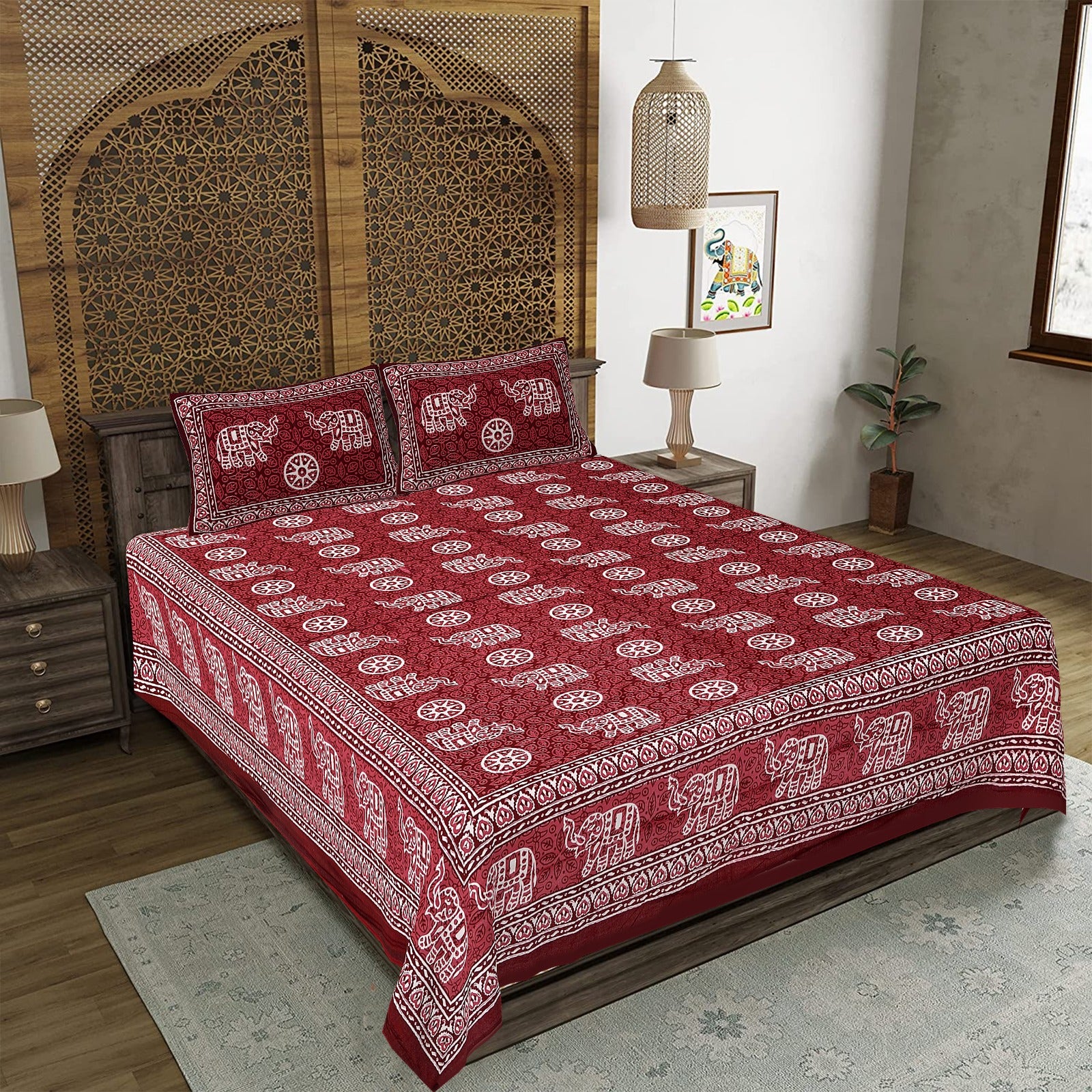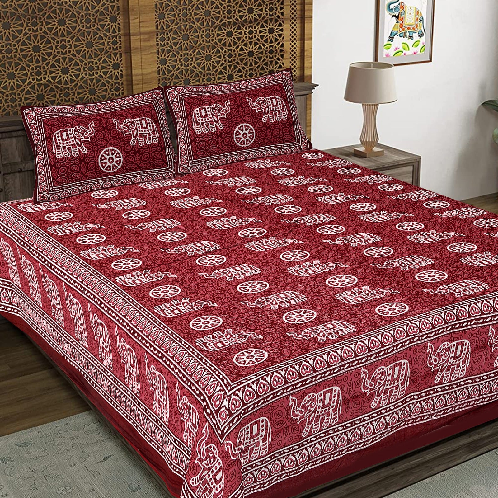 Elephant on Wheels Maroon King Size 100% Cotton Bedsheets