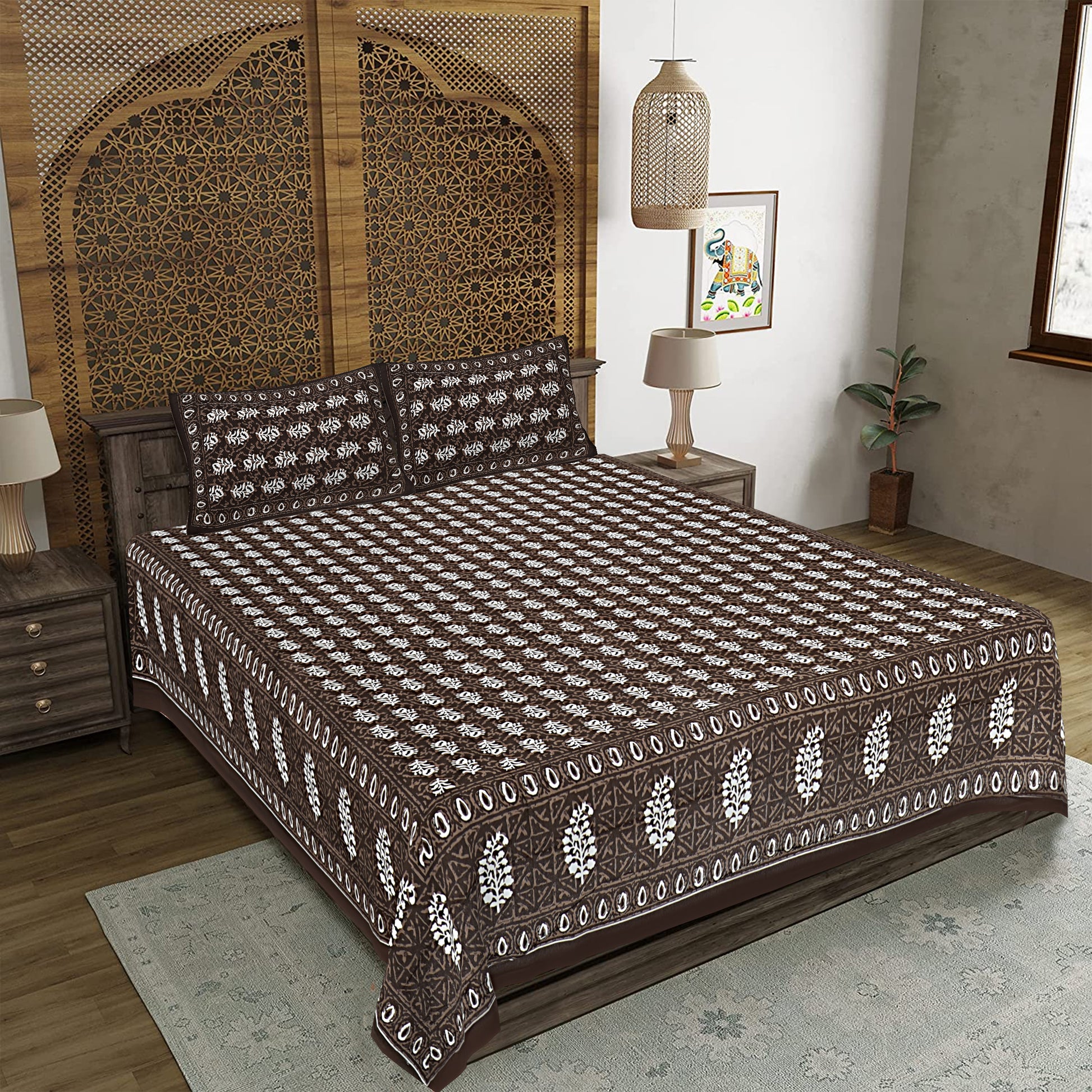 Floral Buti Brown King Size 100% Cotton Bedsheets