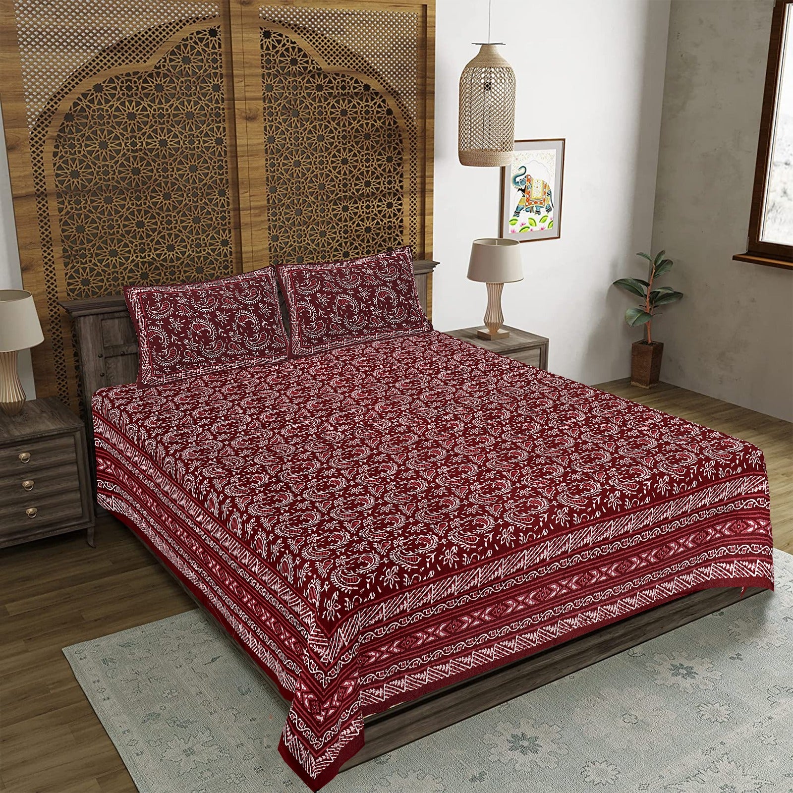Paisley Jaal Maroon King Size 100% Cotton Bedsheets