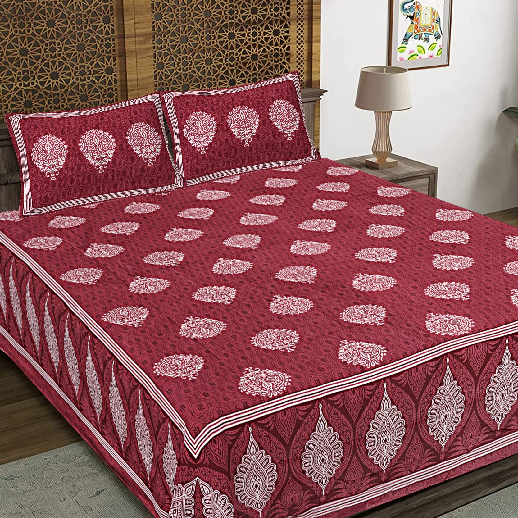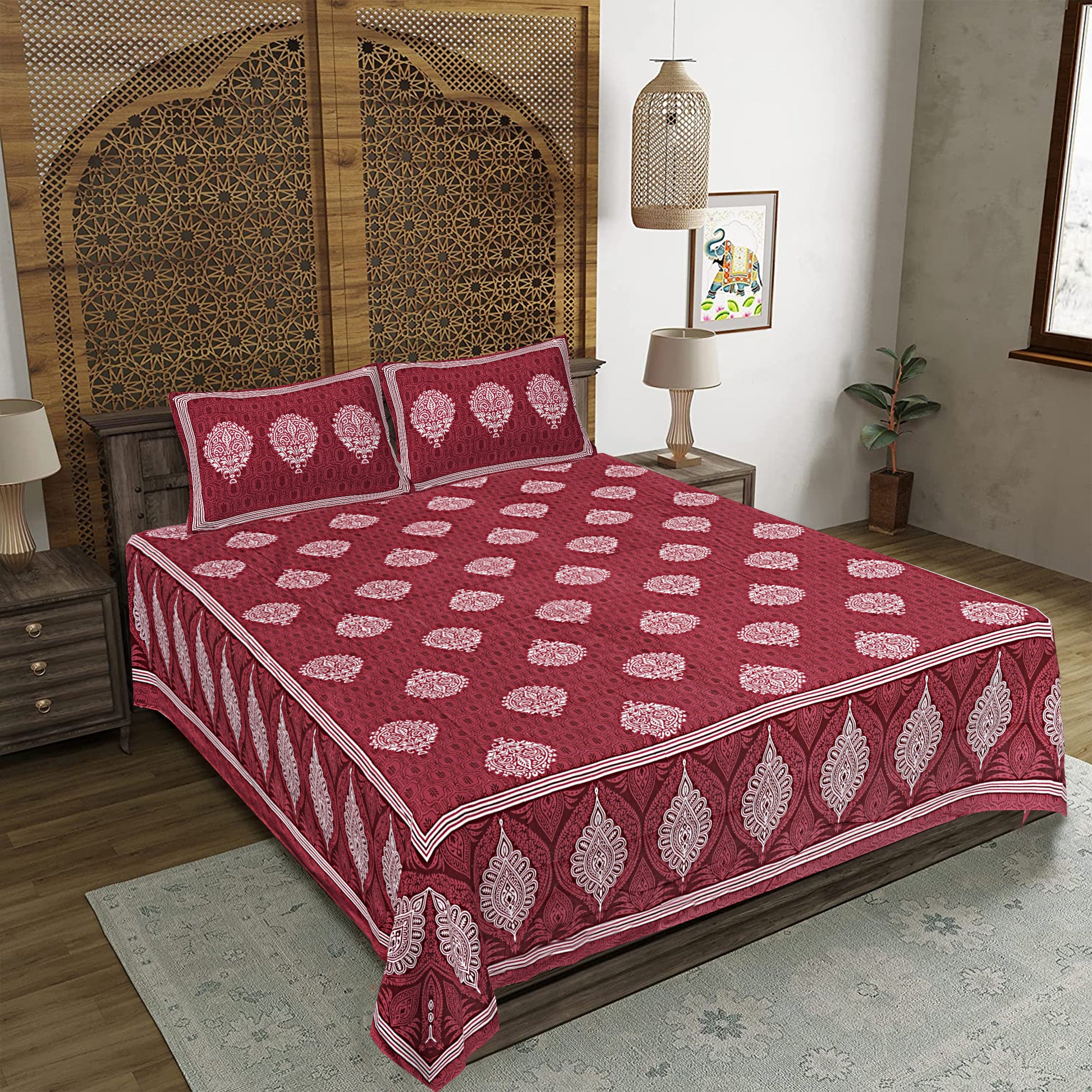Parachute Buta Maroon King Size 100% Cotton Bedsheets