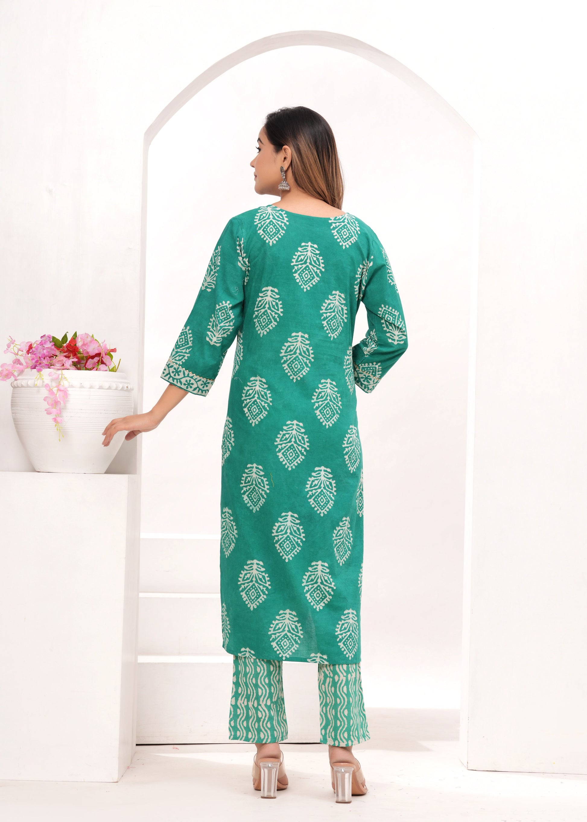Sea Green Batik Hand Block Printed Cotton Suit Set