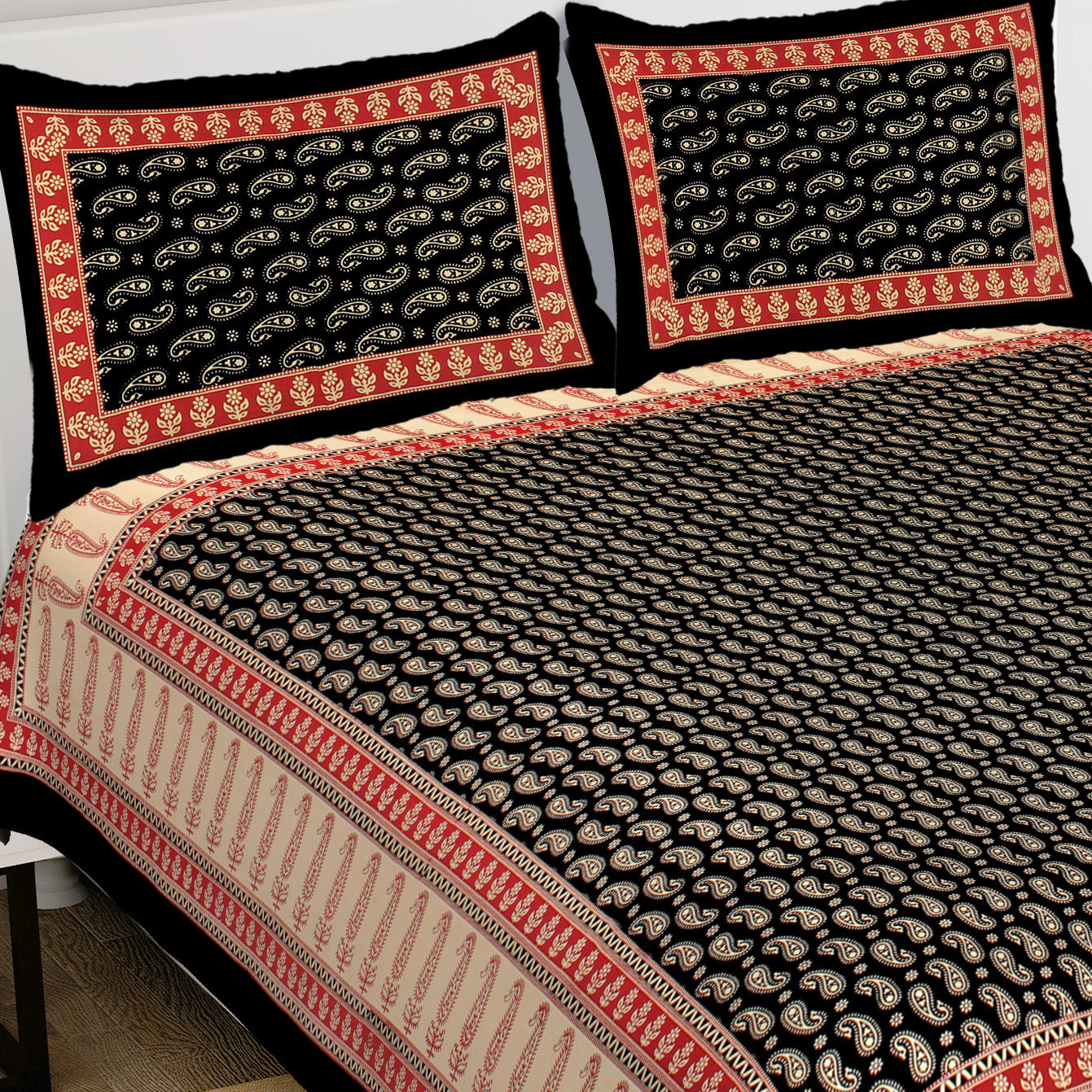 Style your bedroom with this vibrant cotton jaipuri print bedsheet set exclusively designed to make artsy statement. The jaipuri-printed bed sheets feature traditional-themed floral patterns in lively hues. Also, the 100% cotton fabric ensures skin-friendliness, easy wash ability and color-fastness. A fine fusion of both comfort and design- this vibrant and ethnic range of bed sheets is all you need for a restful sleep in all the seasons.
